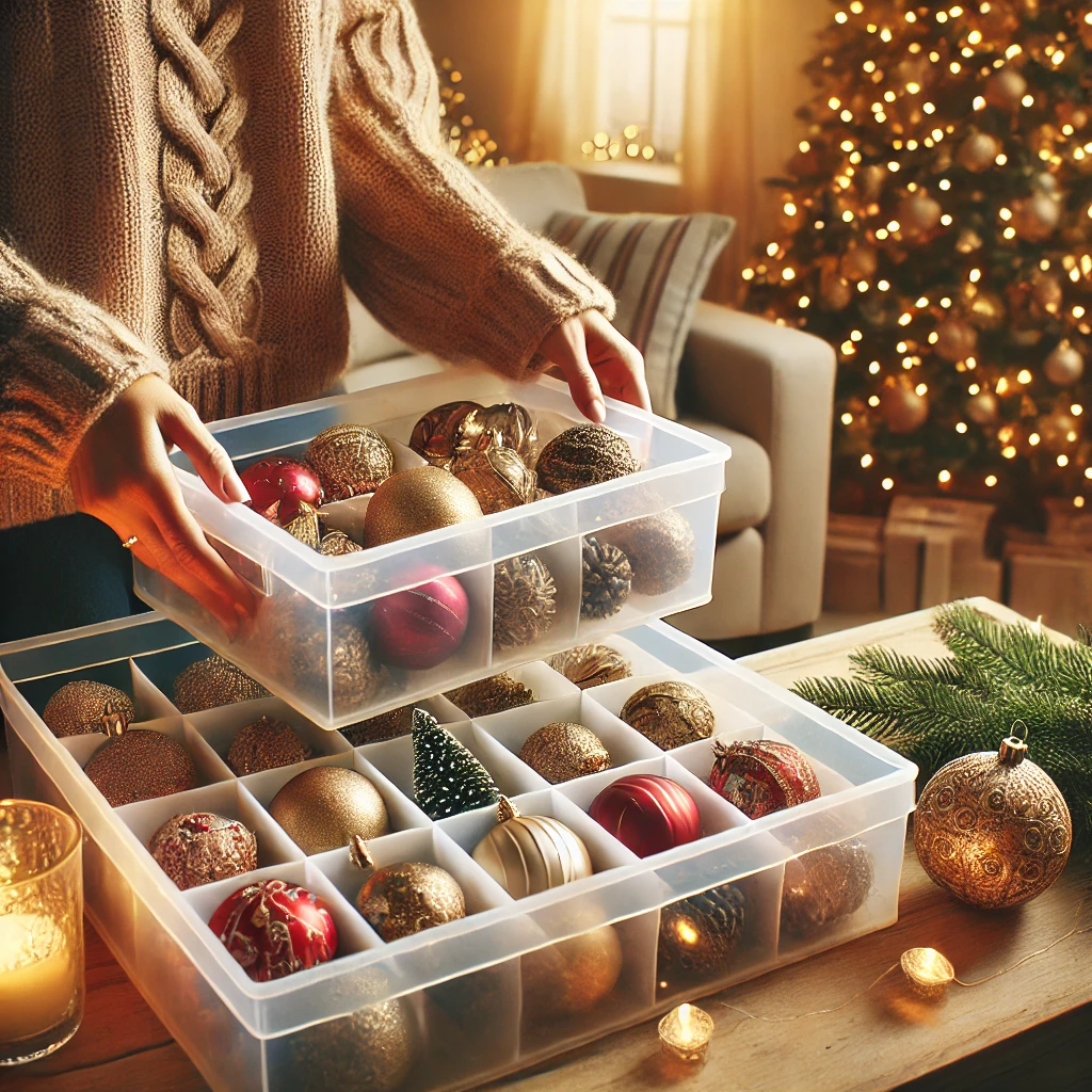 Самый простой способ — использовать коробки, в которых изначально находились игрушки. Особенно удобно, если на упаковке есть прозрачная вставка — это облегчает поиск нужных украшений и позволяет сразу видеть, что находится внутри.