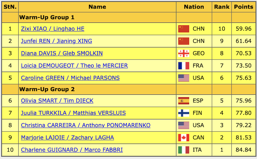 Баллы первого дня и порядок выхода на лёд: