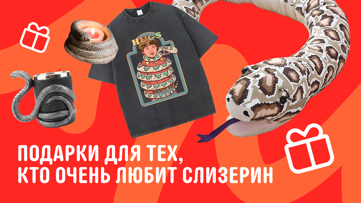 Встречать праздник интереснее всего с тематическими подарками, тем более что сильно тратиться на них не придётся — мы уже выбрали 17 бюджетных вариантов. В статье ждут трендовые аксессуары, одежда и другие милые товары для женщин, мужчин, детей и даже котов! Такую змейку можно и на шее пригреть. А если надоест один сценарий, носите её как браслет, ободок или даже игривый ремешок. Украшение оценят те, кто любит стиль гранж. Горгона Медуза легко превратит окружающих в камень — так и хочется остановиться, чтобы её рассмотреть. Унисекс-модель, которая будет хорошо смотреться и без других аксессуаров. У неё удобное крепление — в ухе сидит плотно. Девочки, признавайтесь, узнали себя и подружек? Такой сувенир можно купить всем друзьям, чтобы у вас был общий стиль. Змейка размером со спичечный коробок: вешайте на сумку, ключи или одежду. Ее можно подарить на удачу кому угодно: коллегам, друзьям, родственникам. Она хорошо встанет на любой стол и будет незаметна в любой сумочке. Стильные змейки