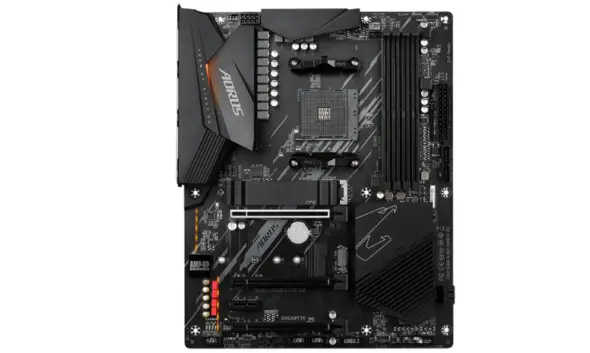 Следующая модель нашего топа – Gigabyte B550 AORUS ELITE V2. Материнская плата выпущена в розничной упаковке и предназначена для процессоров AMD с сокетом AM4. Она совместима с процессорами серии AMD Ryzen 5000, а также с процессорами 3-го поколения Ryzen и Ryzen с графикой Radeon. Плата оснащена одним сокетом и не включает в себя встроенный процессор. Чипсет AMD B550 гарантирует стабильную работу системы.