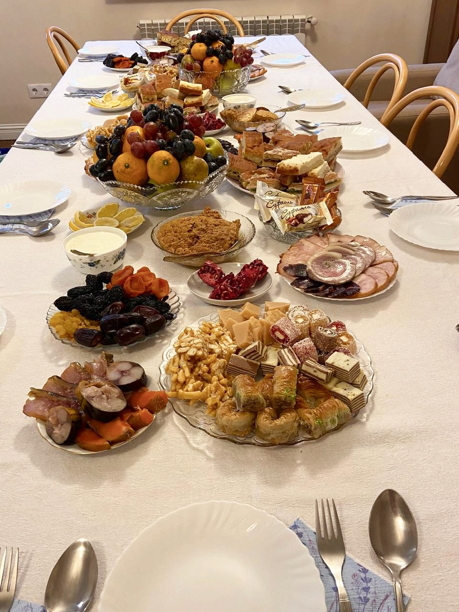 У меня давно была мечта собрать всех, с кем я работаю у нас дома, чтобы пришёл хазрат, почитал, то есть провести кунак ( встречу гостей) только не с родственниками, как обычно, а с коллегами. Сегодня день х настал. И так всё у нас хорошо прошло. Спокойно, по- доброму, по- семейному. Я очень рада! Я, конечно, постаралась, приготовила, накупили мы всяких вкусностей. Очень хотелось гостей порадовать. Ну вроде довольные гости ушли, всё понравилось. И я довольная. Сейчас всё убрали, посуду в посудомойку, скатерти в машинку стиральную, чай попили и всё, можно и спать ложиться. Завтра новый день. А он готовит нам утренник у Ясмины в садике и мне маникюр. Всем хорошего вечера!