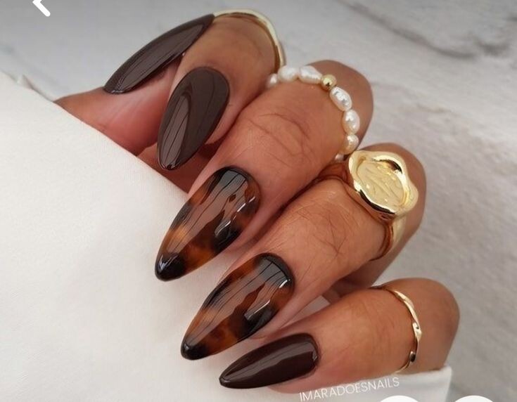Хочу с вами поделиться своими мыслями. Знаете, какие маникюры (если так вообще говорят🤔) мои самые нелюбимые? Предпраздничные. Иными словами те, которые я делаю не на само торжество, а перед ним. Я их называю «черновыми»😂. К примеру через месяц день рождения, а ноготочки требуют подточки уже сейчас. Что делать, плетусь в салон и решаю пока сделать что-то неброское, потому что к самому мероприятию будут уже другие и естественно это будет шик, блеск, красота. Так вот, дорогие мои, сейчас как раз такое предпраздничное время. И пока время мишуры, страз, блесток и прочих сияшек, заметных из космоса, еще не пришло, приходиться довольствоваться малым чем то менее ярким.😃 И если вы, как и я, через пару дней записаны в салон, давайте вместе выберем красоту для своих пальчиков. На самом деле янтарный маникюр был в моде несколько сезонов назад. Но сейчас появилась его новая интерпретация. Мое внимание привлек этот леопардовый принт и я поначалу не поняла: это что за зверь такой? Точнее сказа