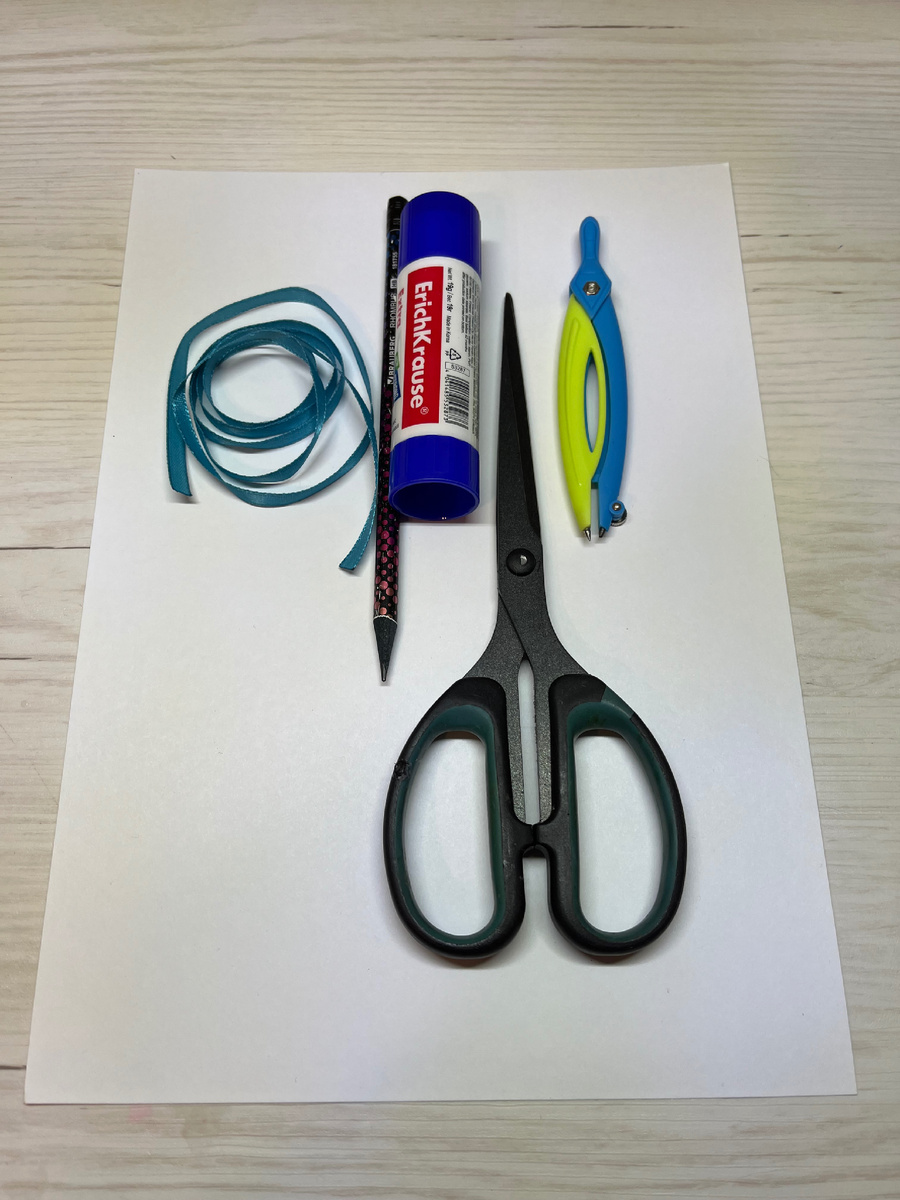 Продолжаем подготовку к Новому году. Часто к празднику в детские сады и школы просят принести елочную игрушку сделанную своими руками или возможно ты захочешь ее сделать со своим ребенком вместе, для своей, домашней елочки, поэтому предлагаю сделать тебе елочную игрушку из ничего. Материалы для ее изготовления у тебя 100% есть в доме, мне кажется эта одна из самых бюджетных елочных игрушек, которую можно придумать и для ее изготовления понадобится совсем чуть-чуть твоего времени. Для работы нам понадобится: альбомный лист или тонкий картон, клей, карандаш, ножницы, тонкая атласная лента 0,7 см шириной или можно заменить ее пряжей, ниткой в несколько слоев или тканью, циркуль или шаблоны кругов, нить, чтоб повесить игрушку на елку. Для шаблона я использовала бабину с нитками и стаканчик от зубочисток ( размеры на фотографии ниже) Нам нужно начертить два круга, чтоб один немного был внахлест на другой ( если сделать сильный нахлест, то не останется места для шарфа) Нужно начертить по бо