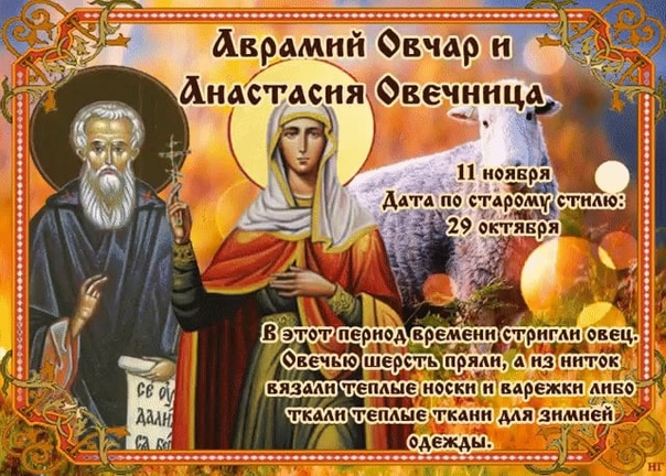 Оба святых: Анастасия и Аврамий считали покровителями пастухов. На 11 ноября приходился день Аврамия Овчара и Анастасии Овечницы, как их тогда называли. Овчарный праздник.