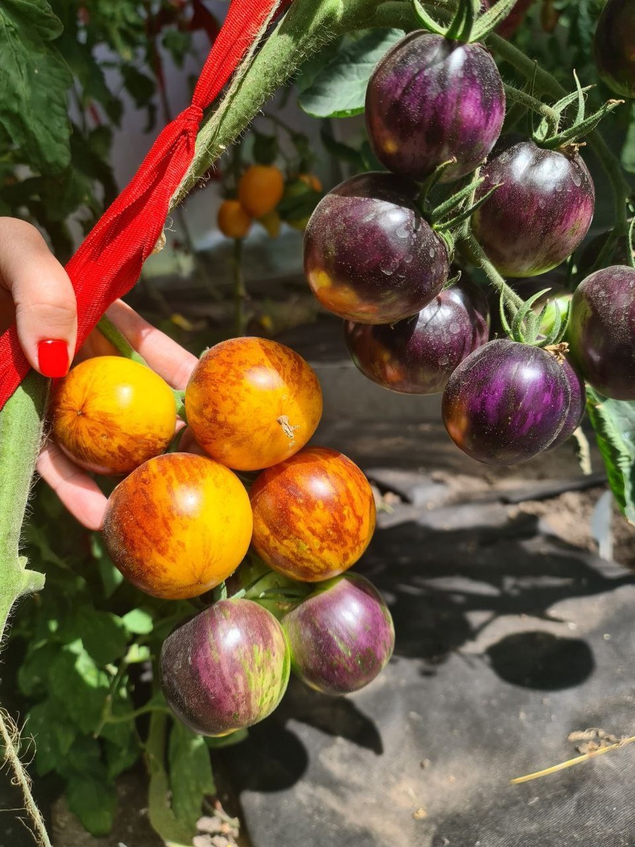 Урожайный сорт, округлые плоды. Окрас в незрелом виде зеленоватый с фиолетовыми штрихами, а в зрелом виде становятся оранжевыми с коричнево-фиолетовыми штрихами, очень красивые😍 Вкусные, с гармоничной кислинкой. #дачнаяжизнь #Томат #дача #огород #сад #надаче Источник: https://t.me/moy_ogorod