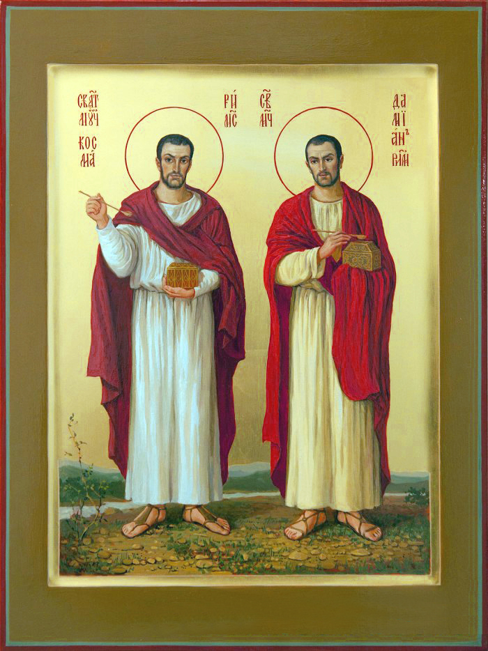 Святые бессребреники Косма и Дамиан были родными братьями, родившимися в регионе, известном как Асия, что в древности обозначало часть Малой Азии. Точные даты их рождения и кончины не известны, но с уверенностью можно сказать, что они жили не позже IV века. Это мнение основывается, во-первых, на том, что в первой половине V века, при императоре Феодосии II, начали строить храмы в их честь. Во-вторых, копты, отделившиеся от православной церкви после Халкидонского собора в 431 году, чтут их как святых, тогда как святых, живших позже, не признают.