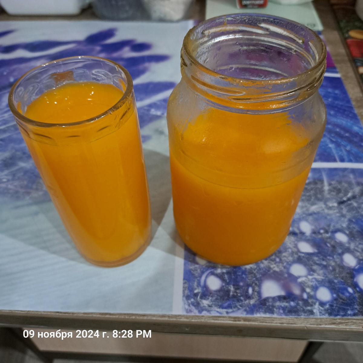 Сок имеет насыщенный цвет и потрясающий вкус! Этот густой тыквенный сок с апельсином на зиму готовится с мякотью и без соковыжималки. Для его приготовления понадобится только погружной блендер. Рецепт 🥐 Тыква 2 кг. 🍊🍊 Апельсины 2-3 шт. Апельсиновые корки 🍋 Лимон 1 небольшой или 1/2 большого 🍯 Сахар 180 г или мёд 💧Вода Общее время приготовления около 1 ч Банки и крышки для консервирования вымыть и простерилизовать в течение 10 минут. Банки можно простерилизовать в микроволновке в течении 5 мин. Тыкву разрезать, вычистить от семян, нарезать на куски и очистить от кожуры. Затем очищенные куски тыквы нарезать на кубики. Тыкву, апельсин и лимон предварительно хорошенько вымыть. Возьмите большую кастрюлю, сложите в нее нарезанную кубиками тыкву и залейте водой так, чтобы вода полностью закрывала тыкву. Кастрюлю с тыквой поставьте на сильный огонь, доведите до кипения и варите на малом огне до готовности, это примерно полчаса. Тыква должна стать мягкой. Взбейте ее погружным блендером