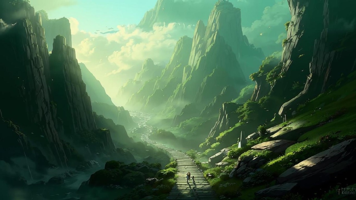 Двое суток понадобилось Лун'Адиону и его спутникам, чтобы пройти горные пещеры и на утро третьего дня они вышли на вершину горы, поднявшись выше облаков. Казалось, что Матаарин остался далеко позади, и они вошли в новый мир. Не было ничего, кроме облаков, небольшой поляны, покрытой пушистыми камнями, и лестницы, ведущей в небо.
