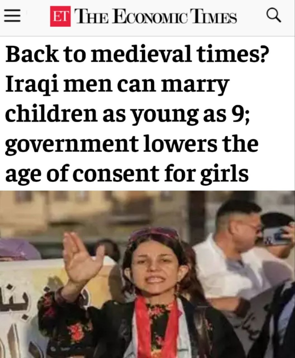 Пока весь мир делает шаги в сторону защиты прав и равенства, в Ираке звучат предложения, от которых захватывает дух, и не в хорошем смысле. Власти страны всерьёз рассматривают инициативу о снижении возраста согласия для девочек до 9 лет. Да-да, не ослышались. Это не сценарий средневековой хроники, а новостная сводка 2024 года. Представители ультраконсервативных мусульманских партий, вдохновлённые «ценностями», решили, что девятилетняя девочка, оказывается, уже готова к роли жены. Поправки, предложенные к закону о личном статусе, заявлены как шаг к процветанию и укреплению традиций, но вызывает это не только шок, но и острое чувство возмущения. Как будто на повестке дня не XXI век с его гуманизмом и прогрессом, а возвращение к худшим образцам исторического правосудия. Вместо создания законов, защищающих детей и женщин, Ирак решает, что можно «узаконить» детство в браке, закрыв глаза на очевидные моральные и правовые последствия. Такие инициативы, как показывают действия правозащитников,