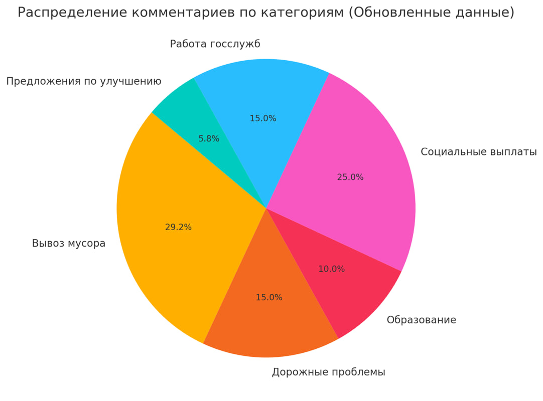 Помимо давно наболевшей темы вывоза мусора, основной, и даже более важной проблемой была и остается помощь властей в компенсациях и восстановлении поврежденного или уничтоженного имущества в результате атак ВСУ. Проведенный анализ комментариев жителей на страницах официальных лиц и органов в соцсетях показал, что заметен рост недовольства по вопросам своевременности социальных выплат и качества работы государственных служб в части компенсации и ремонта имущества, поврежденного в результате атак ВСУ. Данные аналитики показывают, что жалобы, касающиеся социальных выплат, составляют 25% общего числа обращений, тогда как общее недовольство работой госструктур занимает еще 15%. Жители сообщают, что не получают компенсации своевременно: многим приходится оплачивать съемное жилье и коммунальные услуги из собственных средств, ожидая помощи по несколько месяцев. Эти задержки оказывают значительное влияние на финансовое положение людей, особенно тех, кто утратил жилье. Порой заявления просто тер