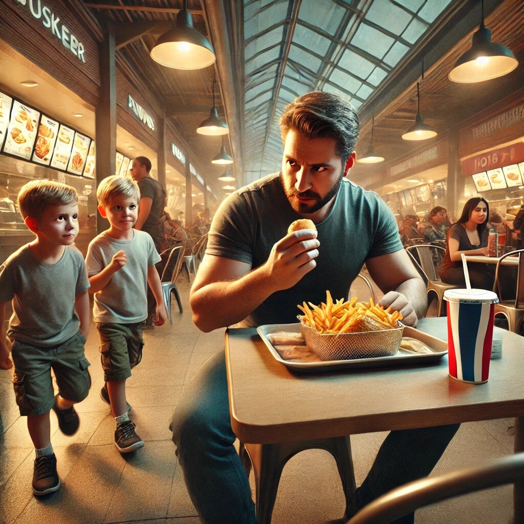 Сегодня сижу на фудкорте, ем свою вечернюю крошку-картошку