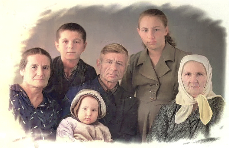 Я маленькая, за мной мой дядя, дед, моя мама, жена деда и крайняя справа моя прабабушка - мама моего деда: