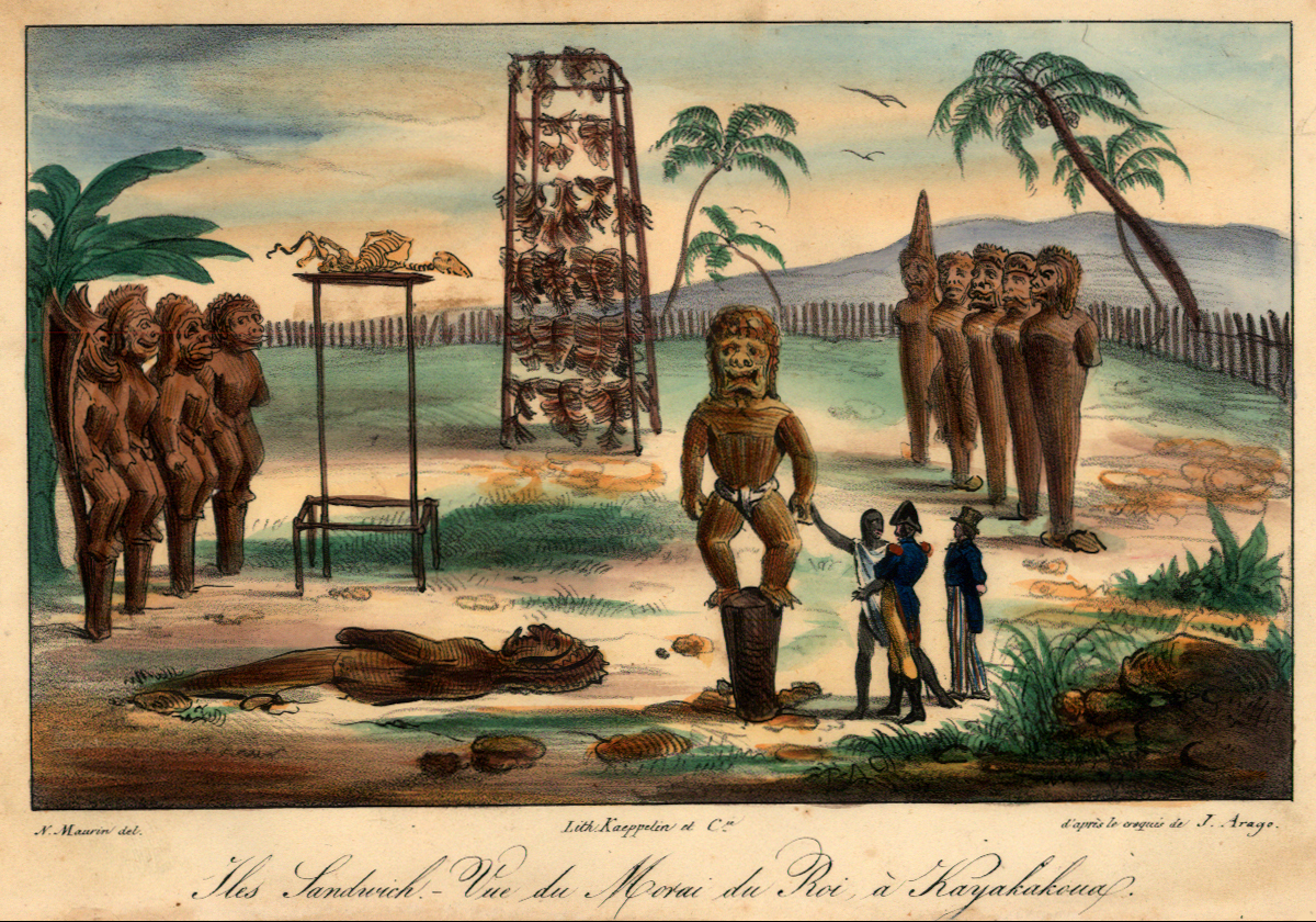При первой встрече с европейцами местные жители буквально распластались перед Куком на земле, приняв его за божество. Однако когда во время обратного пути он решил перезимовать на островах, произошел трагический инцидент, завершившийся убийством мореплавателя. Попытки нового руководителя экспедиции Чарльза Клерка получить тело Кука привели к вооруженному конфликту: только после обстрела берега и сожжения прибрежных деревень испуганные туземцы вернули останки капитана, которые были захоронены в островной бухте.