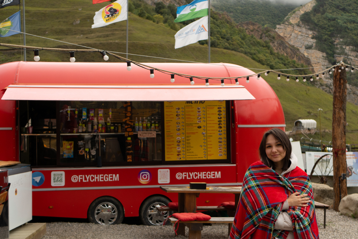 Часть первая. Второй день путешествия был для меня особенно важным. Поездка в Кабардино-Балкарию открыла для меня возможность полететь на параплане. И так как погода в течение 3х дней по прогнозам желала оставлять лучшего (дождь, ветер (хотя он был для нас необходим), облачность), вечером предыдущего дня мы все держали наши пальцы скрещенными. Позавтракав в фудтраке мы начали ждать прояснения относительно погоды и нашего полета. Фотографию фудтрака прикрепляю, понравилась каша с нутеллой и неплохо выглядела яичница с красной рыбой, но рекомендую не пренебрегать просьбой сопровождающего приобрести что-нибудь из продуктов (в первый день мы останавливались у Пятерочки, чтобы взять что-то поесть с собой в домик), однако готовить возможно у вас желания особого не будет, поэтому берите быстро завариваемую лапшу. Мастхэв. Спустя еще полтора часа ожидания нам дали ответ… положительный! И мы собрались. К большой удаче, погода совсем немного прояснилась и был ветер, необходимый для полетов. Фла