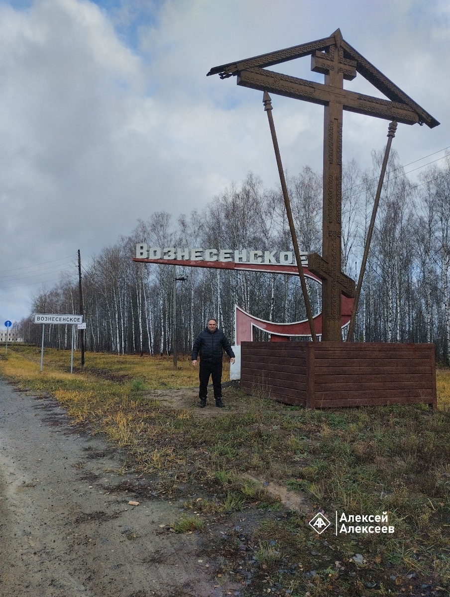 Рабочий посёлок Вознесенское находится на юго-западе Нижегородской области, граничит с Мордовией и Рязанской областью. На въезде в Вознесенское вот такая композиция - стела «Серп» из советского прошлого и крест из российского настоящего. Вознесенское - это достаточно крупный населённый пункт. Проживает здесь около 6 тысяч жителей. Посёлок стоит на реке Варнава. Я слышал такое название реки, но думал она течёт в Варнавинском районе. Сейчас в Вознесенском благоустраивают набережную Варнавы. Всё по-классике - дорожки, лавочки, арт-объекты. Главным символом Вознесенского является матрёшка. Никогда бы не подумал, и не ожидал, что их делают на юге нашей области. Для меня матрёшка - это Ковренино и Семёнов. Вознесенское - это один из центров Полховско-майданской росписи. В посёлке установлен памятник матрёшке. А сам памятник находится в благоустроенном сквере. Тут есть Мост любви. И вот такая вот скамейка любви со светодиодным фонтаном. Всё это находится в сквере с огромным количеством фонаре