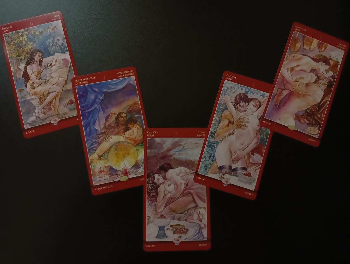 Туз Пентаклей символизирует начало нового этапа, материальные и практические возможности. Между ними может зарождаться нечто, имеющее потенциал для реального воплощения. Возможно, они начали совместный проект, работу или бизнес, который открывает перед ними перспективы.