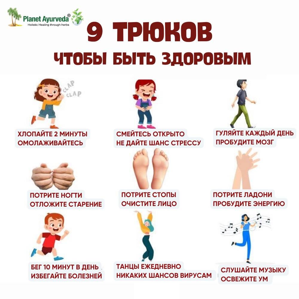 🎉 Хлопаем две минуты - и вуаля, как омолаживаемся! 💆♀️ Не забывайте тереть стопы - и ваше лицо очищается! 💅Потрите ногти - откладывайте старость! 😄 Смейтесь открыто - ведь это лучшее средство против стресса! 🎶 Не забудьте запевать парочку песен - освежите разум! 💃 Зажигайте под свои любимые мелодии - и болезням тут не место! Танец - ваш лучший иммуностимулятор ! 🏃♀️ А как насчет бега? Гоните кровь, а она обязательно ответит вам бодростью и энергией! 🌤️Ежедневные прогулки. Свежий воздух, ароматы природы - что может быть лучше для мозга? ✋Ну и не забудьте взбодриться! Потрите ладони - и новая энергия просто наполнит вас до краев! Заботьтесь о себе и своем здоровье с удовольствием! 🌿💪