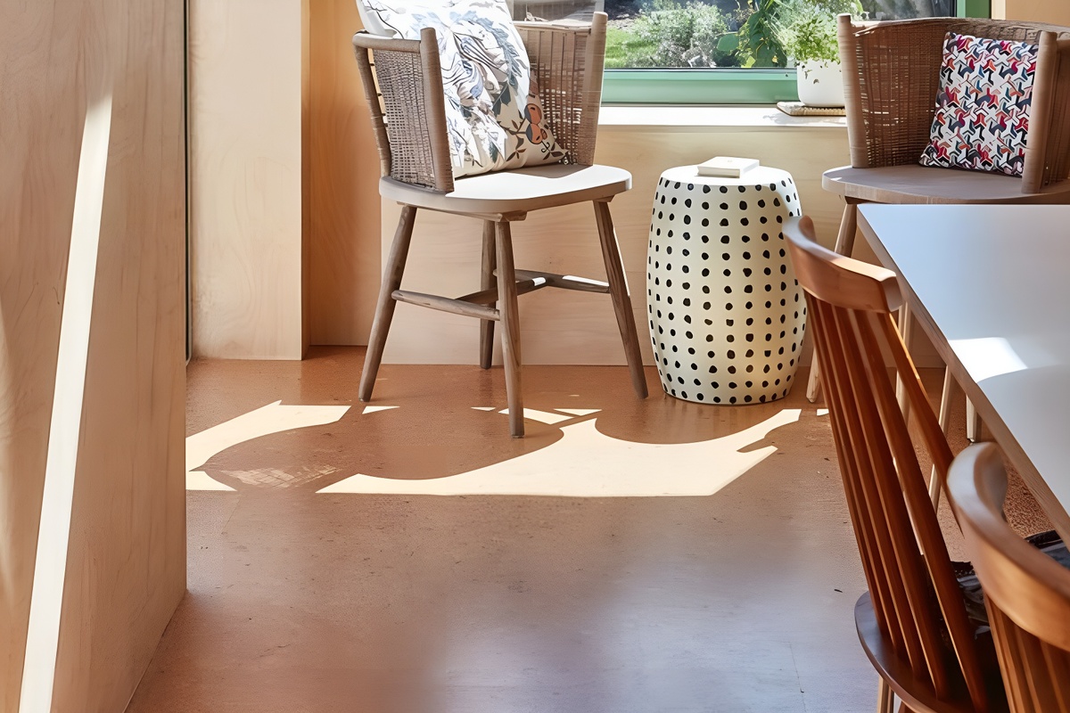 Пробковое покрытие может быть в различных цветах: от натурального до ярких оттенков. К тому же, его легко окрашивать, а для создания уникального дизайна можно добавить узоры или фотопечать. Стильный внешний вид делает пробковый пол отличным выбором для любой кухни — он легко вписывается в разнообразные интерьерные решения. Преимущества пробкового пола на кухне