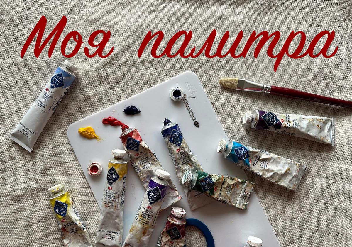 У меня уже были: кадмий желтый средний, кадмий лимонный, охра золотистая, кадмий красный, ультрамарин, кобальт синий, травяная (Сонет), кобальт фиолетовый, коричневый (не помню, какой именно), и конечно же белила титановые. С таким набором я рисовала натюрморты и портреты. Но когда стала выходить на пленэр, стало понятно, что чего-то не хватает, и я добавила: розовый хинакридон, фиолетовый хинакридон, умру жженую, веридоновую зеленую, небесно голубую.
