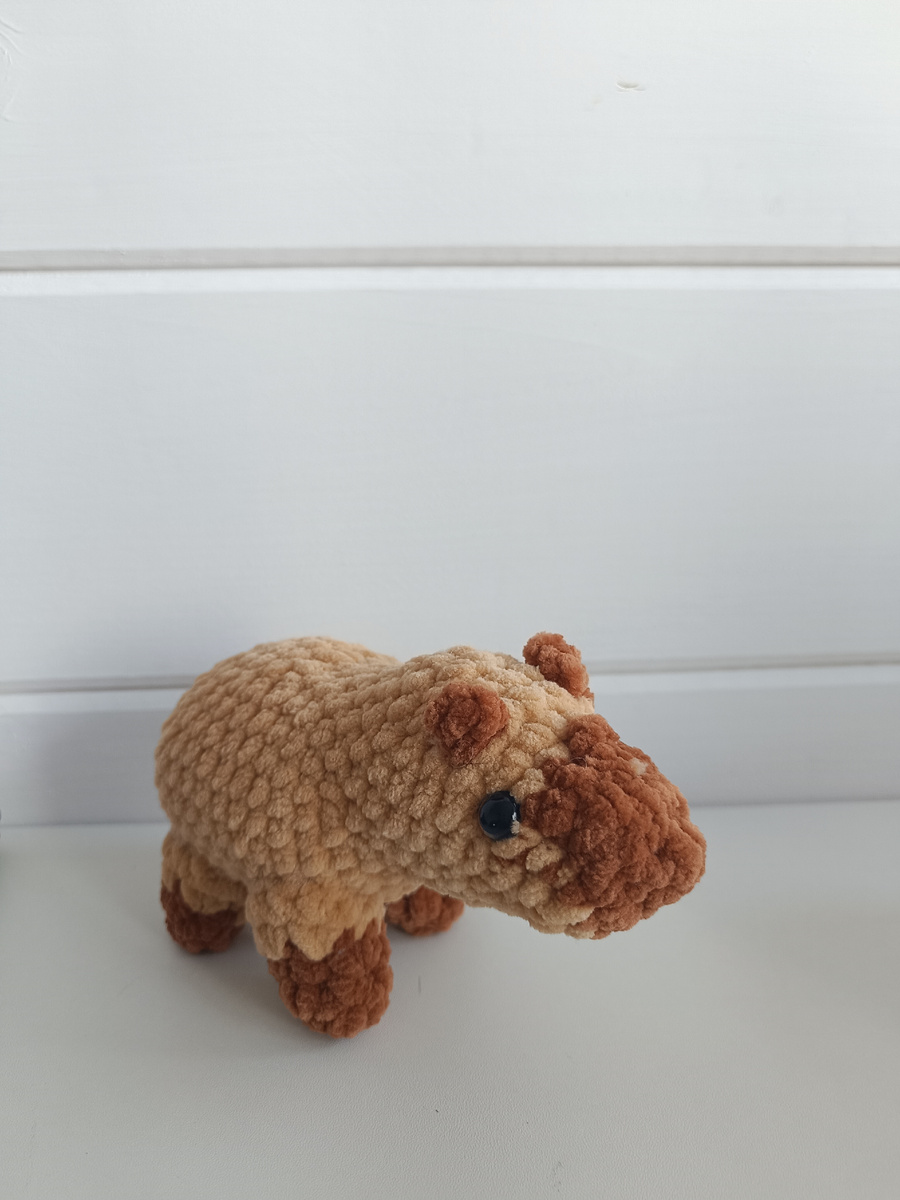 Эта капибара словно оживает в руках, приглашая вас погрузиться в детство, навевая приятные воспоминания о беззаботных моментах. Она станет не только украшением вашего дома, но и символом дружбы и тепла, которые можно передать тем, кто вам дорог. Каждый день с ней будет напоминать о радости искренних отношений. Капибара, связанная из плюшевой пряжи крючком номером 3 мм, представляет собой очаровательное творение, излучающее тепло и уют. Длина её тела составляет около 13 см, а высота — 5 см, что делает её идеальной для того, чтобы стать милым украшением на вашем столе или диване. Мягкость материала и аккуратные линии делают капибару особенно привлекательной. Использование безопасных и гипоаллергенных материалов делает эту капибару подходящей для детей всех возрастов. Объёмный и удобный размер позволяет взять игрушку с собой в путешествие или просто держать рядом во время чтения книги. Пусть она будет вашим напоминанием о том, как важны дружба и тепло в нашей жизни.