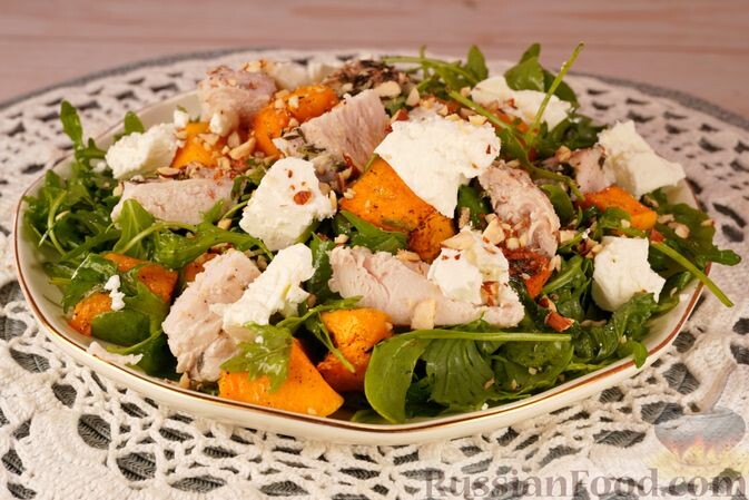 Салат из тыквы с курицей. Салат "Гранатовый браслет" со шпротами. Салат с грейпфрутом и беконом. Свекольный салат с морской капустой. Салат с помидорами, авокадо и нутом. Салат "Гранатовый браслет" со шпротами. Вместо курицы добавьте шпроты, а также консервированную кукурузу, – слоёный салат заиграет новыми красками. Традиционное украшение – зерна граната. Они вносят свою нотку во вкус салата и придают ему эффектный вид. Салат с грейпфрутом, беконом, огурцом и яйцами. Аппетитный аромат придаёт обжаренный бекон, свежие огурцы приятно хрустят, а варёные яйца отвечают за питательность. Грейпфрут интересно оттеняет вкус остальных продуктов. Салат со свёклой, картофелем, морковью и морской капустой. Винегрет с морской капустой вместо солёных огурцов по вкусу получается оригинальнее классического. Заправляется свекольный салат растительным маслом. Салат с помидорами, авокадо, нутом и фасолью. Основу этого салата составляют варёный нут и консервированная фасоль. Авокадо дополняет питательнос