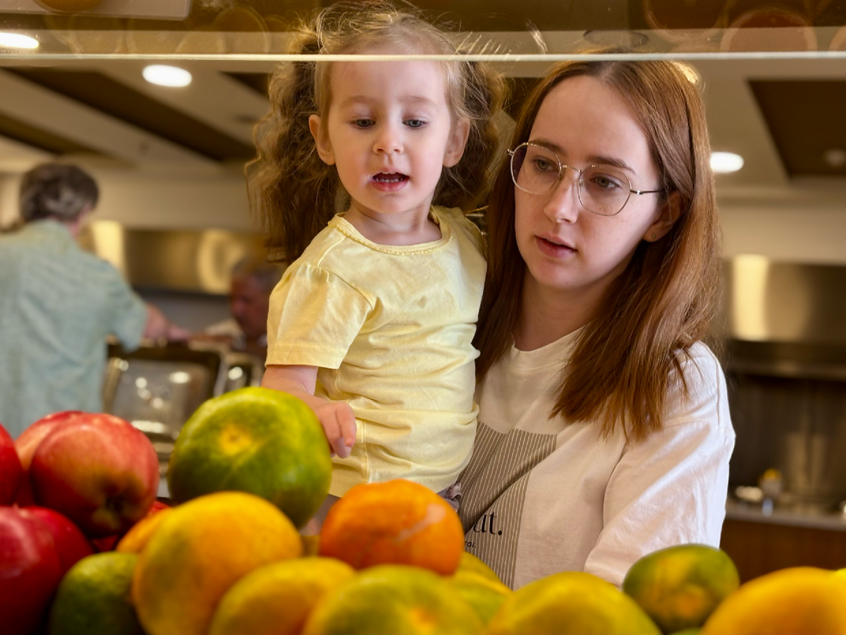 Когда заходим в ресторан, Лина идет по своим делам, мы с Евой - по своим. В одной руке у меня обычная она, во второй - тарелка. Просто оставить девочку за столом и идти набирать еду, я опасаюсь. Слишком много разных людей снуют вокруг.