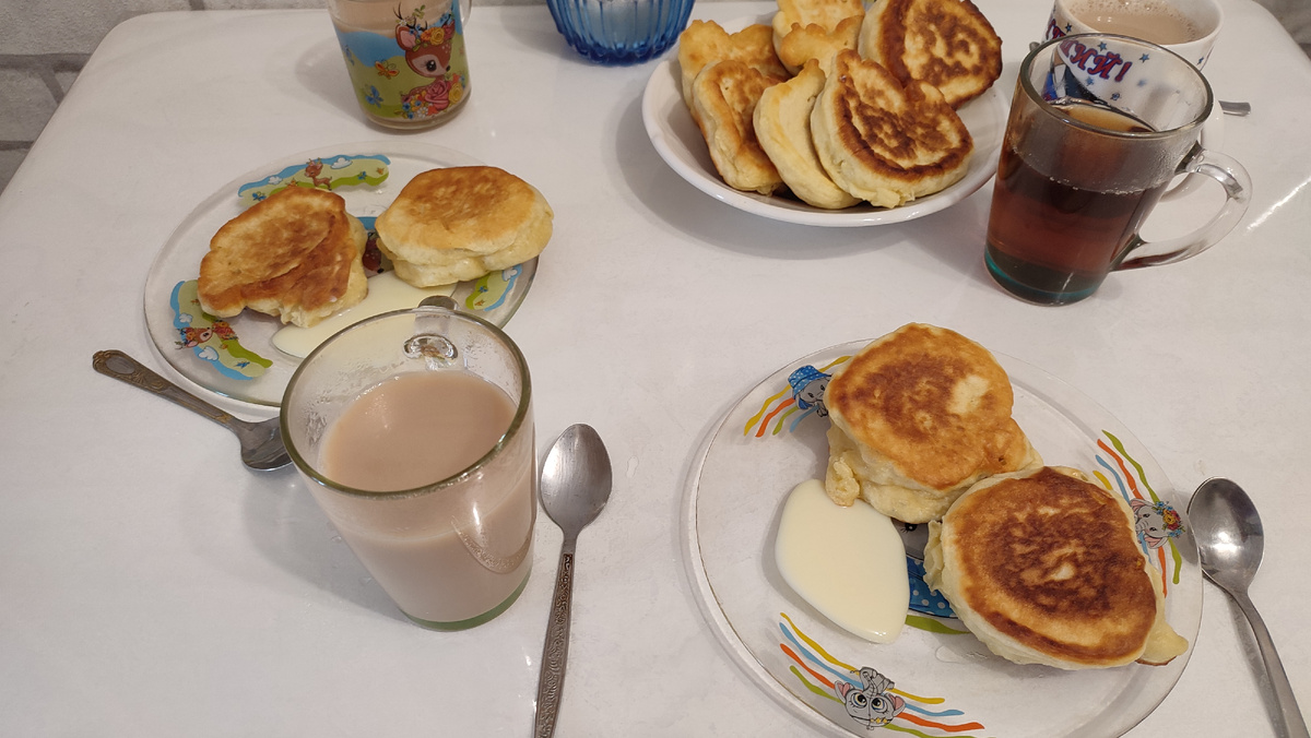 Всем приветик, мои дорогие🤗🤗🤗 Сегодня у нас было вкусно. Могу сказать, что угодила и дочке и сыну 😄 Каждый день, как вечер, дочка начинает просить оладушки. То на обед, то на ужин 🤦♀️ Кто то скажет, ну приготовь, тяжело что-ли? Да, тяжело, скажу я. Если я не настроена что либо готовить, то ничего не получится. Нужно вдохновение😄😄😄 Это во первых. А во вторых, дома не было кефира🙈. Ну из-за этого в магазин бежать не хотелось. А если и были в магазине, забывали купить. Вот такие мы родители🤷♀️ Сегодня же утром отправила мужа за кефиром и сгущёнкой. Ммм... 😍😍😍 Тут сынок решил попросить блины на обед, но мне пришлось отказать. Сказала, что в следующий раз. Уже наверное неделю, сын просит хинкали. Нам и самим хотелось. Каждый раз оттягивала готовку, потому что надо хорошенько повозиться, чтобы всё получилось как надо. Сделала тесто. Холодная вода, соль, мука, и немного растительного масла. Фарш смешанный. Сюда добавила много зелени (петрушка, укроп, зелёный лу