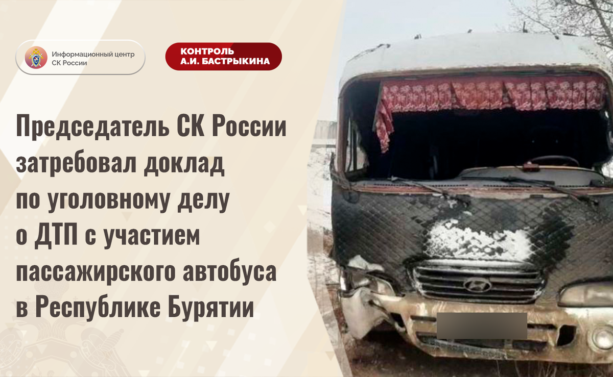 Председатель СК России затребовал доклад по уголовному делу о ДТП с участием пассажирского автобуса в Республике Бурятии