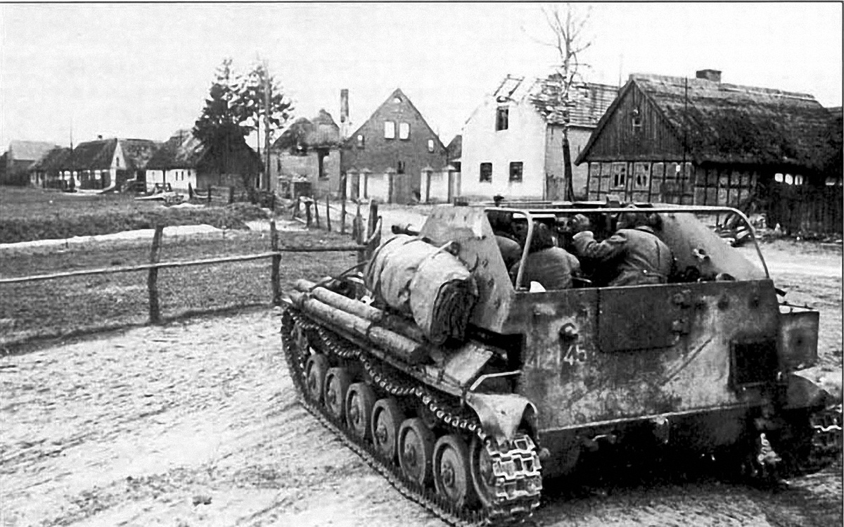 Через четверть часа езды по практически пустынным и узким улицам в общем направлении на юг самоходка выехала на довольно широкую магистраль. В нескольких десятках метрах впереди поперёк улицы перебегали от дома к дому несколько фигур в касках и с ППШ наперевес. Виктор усмехнулся и скомандовал: