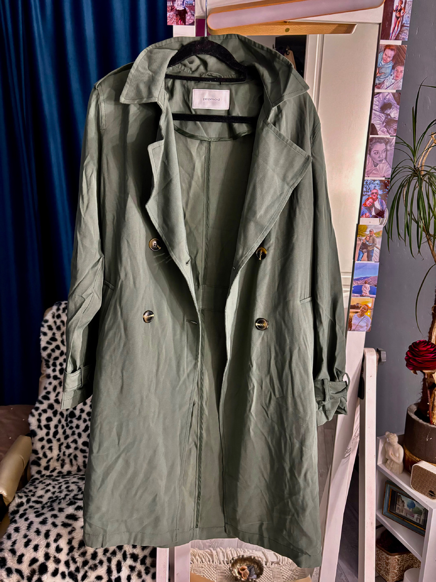 Сегодня не будет абстрактных размышлений, перейду сразу к делу. Читаю у многих авторов, которые ставят под сомнение покупки в Секонд Хендах, что подобный шопинг, глупая трата денег на поношенные вещи, а на скидках так вообще можно найти только одно тряпьё-старьё. Что ж, мнение имеет место быть. Но я уже не раз доказывала верность высказывания «Кто ищет, тот всегда найдет». Сегодня в моем СХ Столичный Гардероб распродажа в 70%. Поехала посмотреть остались ли там мои «хотелки» с прошлого раза. Их не осталось, но появились другие интересные и весьма достойные экземпляры. Вот что я забрала сегодня из «тряпья-старья». Вашему вниманию «старьё» номер 1. Абсолютно новый тренч Promod. Цена со скидкой 703р. Сложный оттенок зеленого придает ему особый шарм. Подчеркну - новая вещь за 703р. Лот «тряпка» номер 2. Зауженные брючки с небольшими отворотами. Состояние новое, производство Италия, Romi-ho. Размер 50 меня смутил, я ношу 36/38 (8). Загуглила этот бренд и вот, что нашла: Romi-Hò-это бр