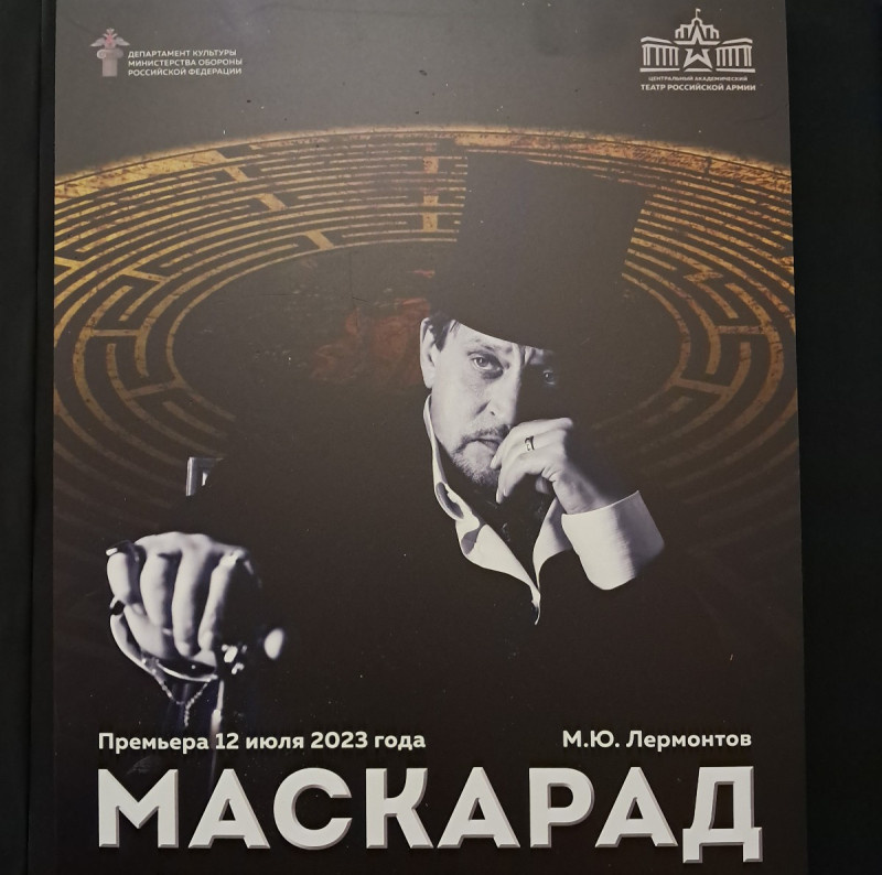 После лекции в Театра Моссовета мне было вдвойне интереснее посмотреть спектакль «Маскарад» по драме Михаила Лермонтова. Но смотрела я его на сцене Театра Российской Армии в постановке режиссера Нины Чусовой. Её другую режиссерскую работу с Александром Домогаровым в главной роли (как и в этом спектакле) я видела как раз в театре Моссовета, это был «Ричард III». Очень интересно было погрузиться в эту историю любви, ревности, человеческих страстей и интриг. Удивительно, это произведение Лермонтов написал всего в 21 год, потрясающий талант! А актерам театра удалось прекрасно перенести историю на театральную сцену. Александр Домогаров органичен в образе Евгения Арбенина, обуреваемого страстями. Особенно поразила сцена, когда он наблюдал за смертью Нины — «Так скоро? Нет еще. Осталось полчаса». Жестокий человек, это было страшно... И на контрасте с ним Нина (Карина Балашова) — нежная, чистая, хрупкая. Она именно такая, как я себе представляла. Очень яркий образ у Баронессы Штраль (Анастасия