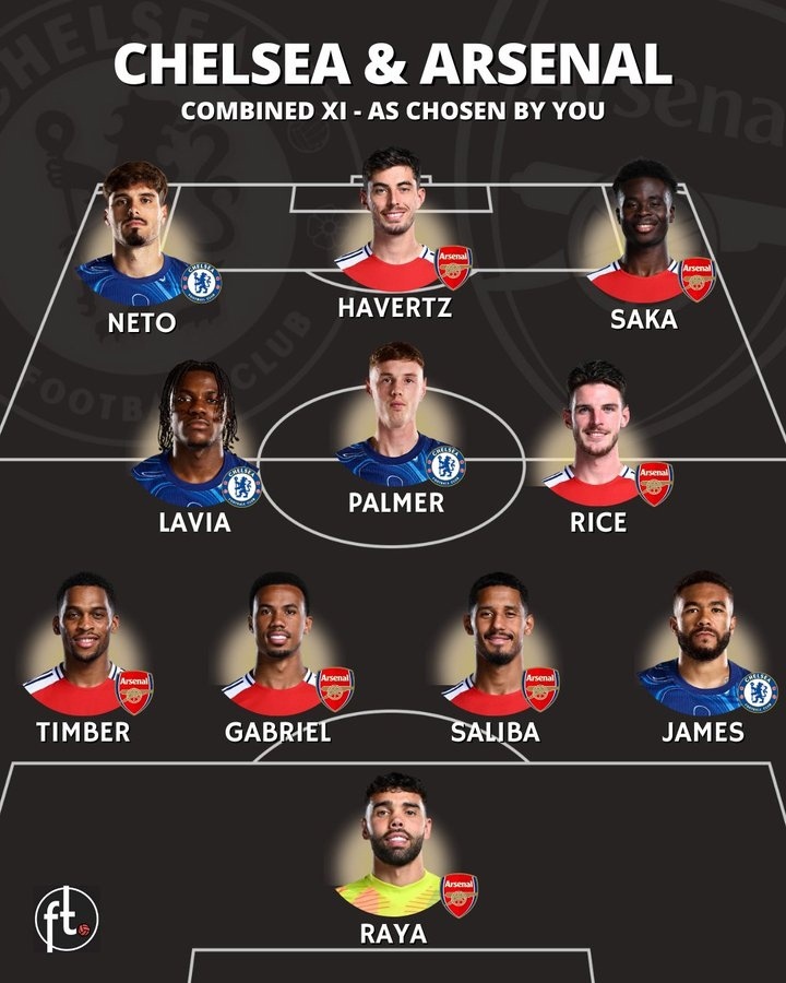 Центральной игрой 11-го тура Премьер-лиги станет встреча «Челси» и «Арсенала». После 10 матчей команды набрали по 18 очков, «синие» обходят «канониров» по разнице мячей и занимают пятую строчку английского первенства. В преддверии матча портал Football Tweet собрал комбинированный состав футболистов столичных клубов. Основу команды составили игроки «Арсенала»: Давид Райя, Юрриен Тимбер, Габриэл, Вильям Салиба, Деклан Райс, Букайо Сака и Кай Хавертц. «Челси» в комбинированном составе представляют Педру Нету, Ромео Лавия, Коул Палмер и Рис Джеймс. Фанаты обсудили получившийся состав: 💭 «Без Кайседо эта команда выглядит какой-то шуткой. А Райса нужно заменить на Энцо». 💭 «Кайседо вместо Райса, Фофана вместо Салиба, Санчес в воротах». 💭 «Джексон > Хавертц, Кайседо > Райс. Любой, кто смотрит АПЛ, с этим согласится». 💭 «Эта команда могла бы доминировать в Премьер-лиге. Какой состав!» 💭 «Как можно было не включить в состав Кайседо? Он сейчас буквально один из лучших в команде, а может, и