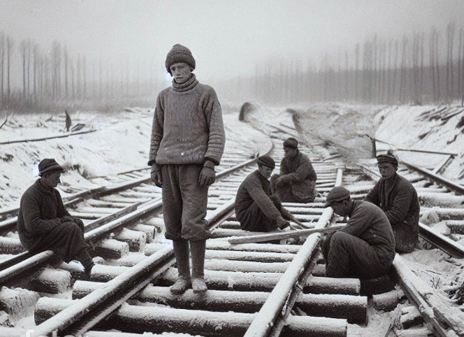 Родной берег 47 Витька утром нашел на станции Лидию Николаевну. - Бригада сейчас на дорогу выезжает. Ты вчера рвался рельсы укладывать, можешь присоединиться. Только варежки возьми. Я меховые принесла, - Лидия Николаевна протянула Витьке варежки. Тот согласно кивнул, заулыбался. - Тётя Лида, я не подведу, - горячо заверил парень. - Больно то там не ярись. Мужики – народ привычный, а ты можешь и без рук и без спины остаться. Так что втягивайся постепенно. Начало Было холодно, но Витька холода не чувствовал. Уже через час – два понял, как тетя Лида была права, когда говорила о спине. Она ныла, руки висели плетьми. - Ну что, малой, узнал почем фунт лиха, - подшучивал дядя Коля. – Посиди, отдохни немного. А то завтра не встанешь. Вечером до дома Витька чуть добрел. Сразу лег отдыхать. Забежавшая на минутку Дуся, сразу поняла, что парень после первого рабочего дня. Она принесла микстуру и заторопилась на работу в ночную. Настя по прежнему тяжело дышала, хрипела и пока даже намека не демонст