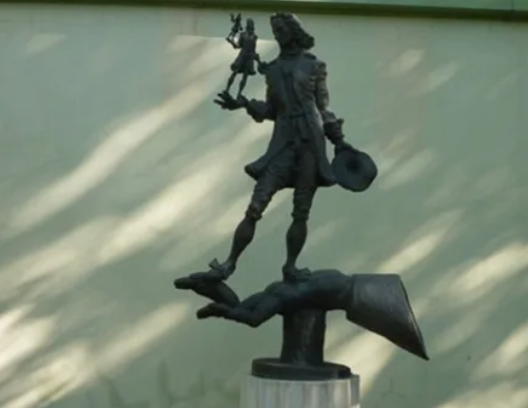 Вот и во дворе филологического университета Санкт-Петербургского университета, который находится на улице Университетская набережная, установили этого удивительного литературного героя, который стремился к приключениям и путешествиям. Изготовлен этот памятник из бронзы, а высота его достигает примерно 150 сантиметров.