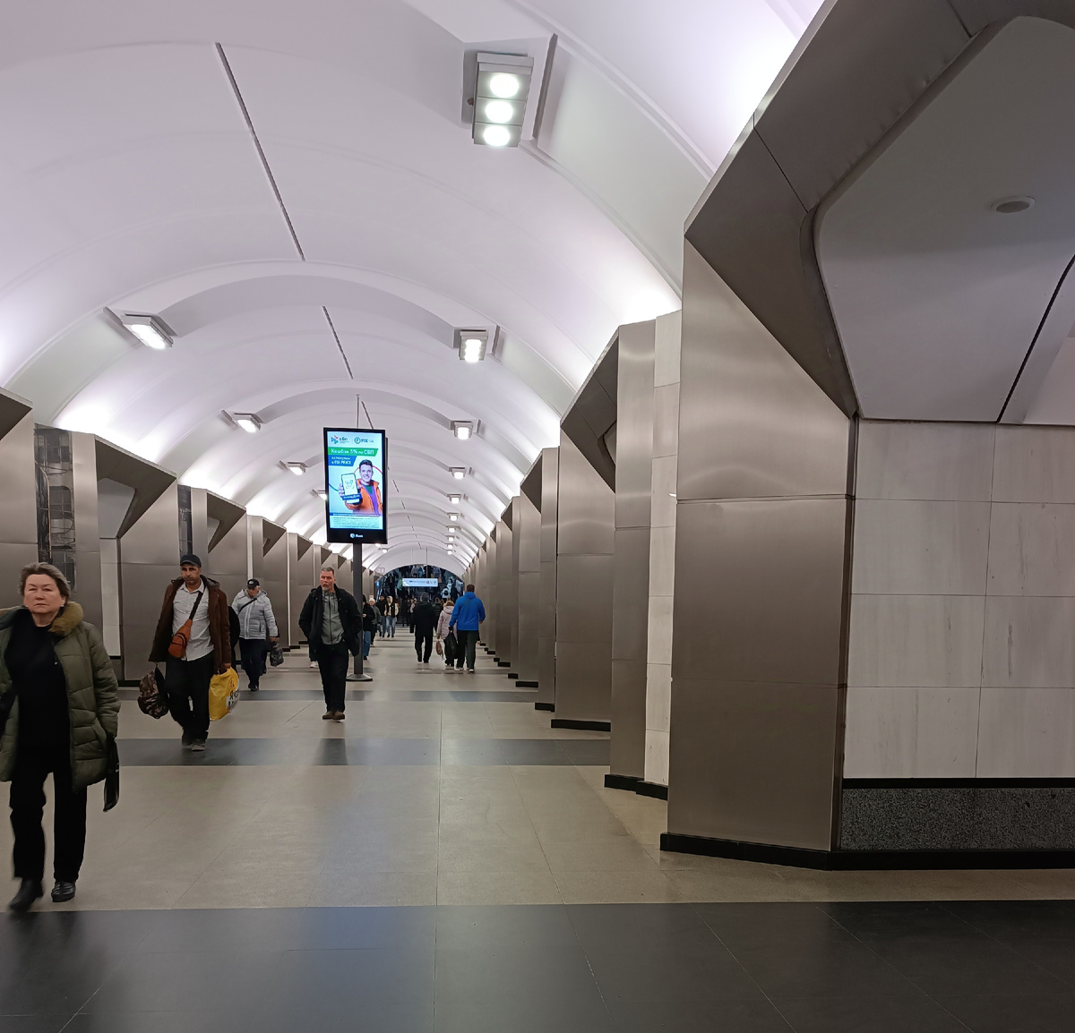 10 ноября 2024 года Здравствуйте, друзья! Сегодня мы посетили необыкновенный музей, собравший в своих 26 залах огромную коллекцию полотен зарубежных художников, в основном импрессионистов. Но прежде, чем попасть в этот музей, я буквально на бегу посмотрела ещё одну "экспозицию", прямо не выходя из метро. Это станция "Сретенский бульвар" и необычные панно, её украшающие, работы художника Ивана Лубенникова. То ли я раньше на этой станции вообще не бывала, то ли пробегала её, торопясь на пересадку, но на то, как интересно она декорирована, внимания не обращала. Но сегодня видно звёзды сошлись, и стальные панно Ивана Лубенникова моё внимание привлекли и показались мне очень интересными. Сама станция светлая, отделана мрамором, и на мраморных пилонах располагаются 24 панно художника. Тема панно - "человек и бульвар", всего их 24 и вот некоторые из них. Оригинальное изображение памятника Грибоедову. Просто бредущий человек, кажется он очень одинок. Фрагмент пейзажа, такой можно найти на мног