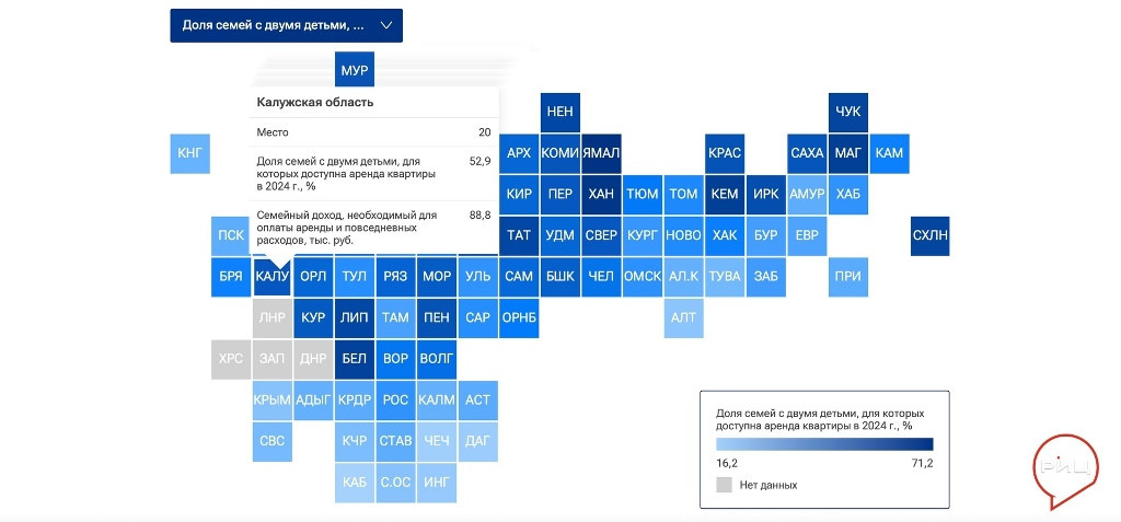 Этот показатель вывел регион на 20 место в рейтинге доступности аренды жилья от РИА Новости Стоит отметить, что для оплаты съёма квартиры и повседневных трат семейный доход калужан должен составлять около 90 тысяч рублей. Лидерами по доступности аренды являются Ямало-Ненецкий и Ханты-Мансийский автономные округа, а также Магаданская область. Замыкают рейтинг Дагестан, Чечня и Кабардино-Балкария.