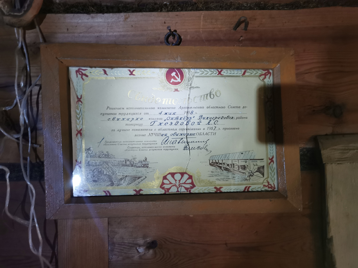 Скрипнул замок, небольшое усилие плечом, и мы внутри Дома с заколоченными окнами. Здесь ещё 10 лет назад кипела жизнь. За дверью хозяин вязал мушки для рыбалки, а хозяйка пекла пироги, если перемотаем ещё на 30 лет, то увидим, как под этой крышей держали корову. Продвигаемся на 60 лет вглубь и видим, как хозяйка весила на стену грамоту. Как ты был горд, должно быть! Эту калитку не открыл солдат в 1945-м, не постоял во дворе, глядя в окна, перед тем, как войти. Несколькими годами раньше страшную весть принёс почтальон. Как ты горевал, когда терял своих одного за другим! Как с удивлением принимал маленьких кричащих жителей под свою крышу, как летом малышей становилось все больше, а ты словно расцветал и был рад своей нужностью. Эти стены помнят столько событий, что теперь ко всему относятся снисходительно. Даже тех, кто заколачивал окна, не винят.