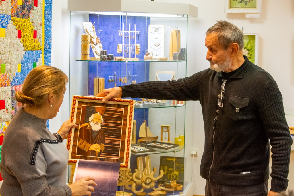 С наступлением промозглой погоды, когда краски природы блекнут, особенно ощущается потребность в тепле и ярких впечатлениях. Культурный центр имени Жукова предоставляет такую возможность на выставке «Боровский многоцвет» Ежегодно под сводами учреждения собираются лучшие образцы декоративно-прикладного искусства, созданные руками мастеров муниципалитета и округи. Камерный зал не так велик, и организаторам экспозиции приходится отбирать шесть-семь художников. В этом году представлены Боровск, Балабаново, а также Обнинск. Открытие выставки традиционно состоялось в День народного единства. А так как она проходит раз в год, руководитель жуковского центра Ольга ЗАХАРОВА сравнила ее с именинами: «Мы стараемся представить зрителю как уже известных творцов, так и открывать новых мастеров, незнакомых обширному кругу публики, вливающихся в наш тесный, но дружный клуб». Так, одной из звёзд районного масштаба, представленной на «Многоцвете», можно назвать Татьяну НИКИТУШКИНУ. Она работает в техник