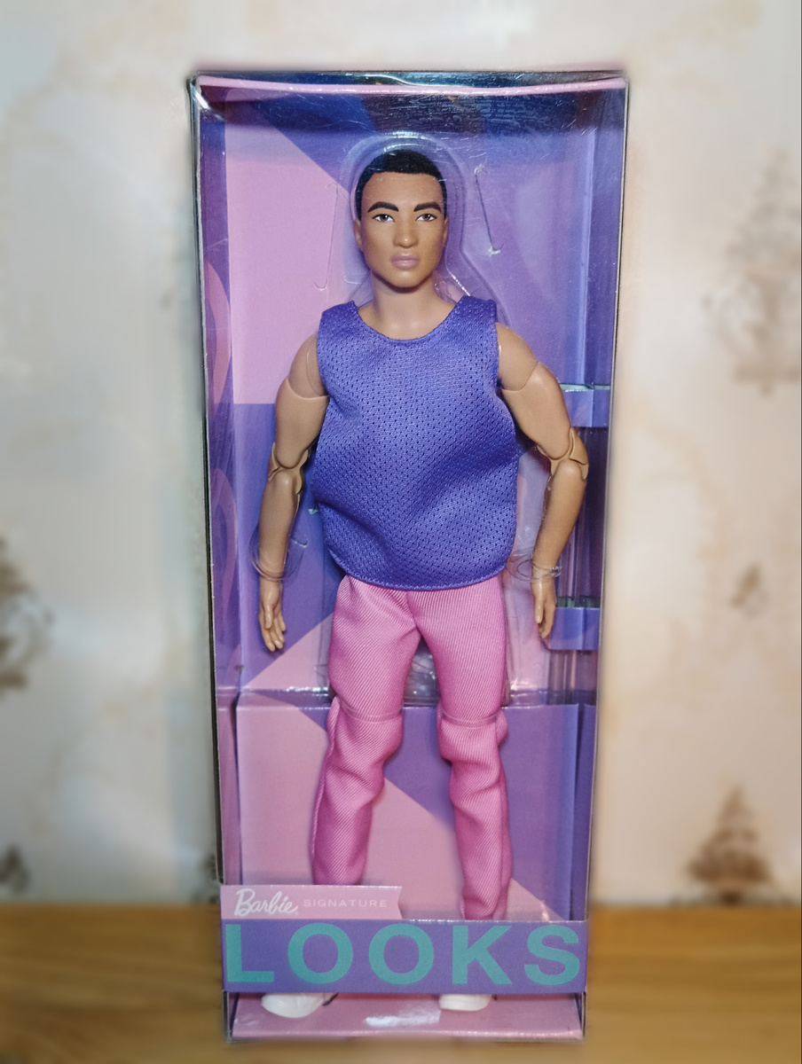 Приветствую всех на моем канале! Настало время раскрыть интригу, связанную с фотографиями в альбоме Даны. К полинезийской красавице приехал мужчина, который, вероятно, на текущий момент есть у многих коллекционеров. Речь идет о Брендоне серии Looks: Я долго присматривалась к этому темноволосому Кену и не решалась селить его в свою коллекцию. Однако фотографии коллег по хобби изменили мое отношение, а скидки придали уверенности в выборе. Я немного поколдовала над его внешностью и спешу показать вам результат! Я влюблена в сочетание темных волос и голубых глаз, а на контрасте с таким загорелым скинтоном взгляд кажется еще более выразительным. Над его легендой предстоит еще поработать, думаю, парень обязательно раскроется как персонаж. Его национальность варьируется у разных любителей кукол, в мою же коллекцию он приехал с острова Таити, так что у него с Даной общее место рождения. Решила дать ему полинезийское имя Тейн. С обновленной внешностью Тейн вполне мог бы работать моделью. Возм