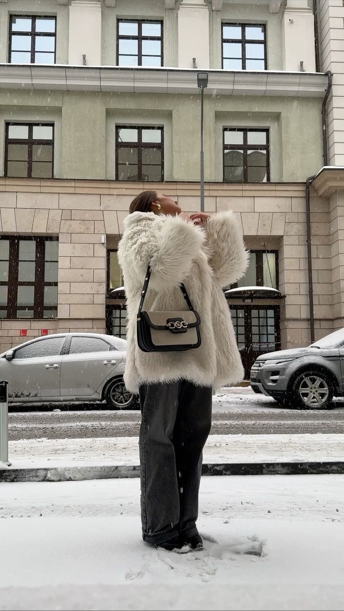 Как носить: Пуховую сумку можно комбинировать с объемными пальто, пуховиками и свитерами. Она добавит образу легкости и неформальности, поэтому подойдет для прогулок, встреч с друзьями и даже для офисных луков в стиле casual.