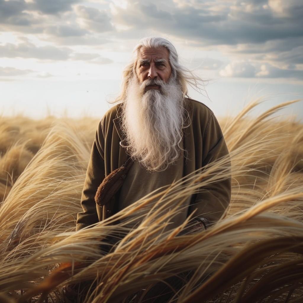 Внезапно меня обдало порывом ветра. Откуда ни возьмись налетел вихрь, возникло ощущение, что нахожусь в центре воронки. Хотелось вскочить и бежать, но ноги онемели. : И тогда я увидела его: высокого : худого старика с длинной, развевающейся по ветру бородой, одетого