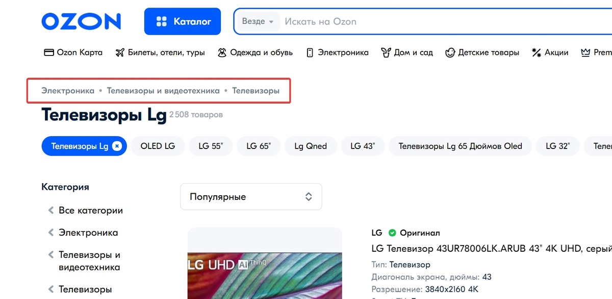 - Ориентация на сайте: "Хлебные крошки" показывают, где именно находится пользователь, что особенно важно при переходе на страницу из поисковой выдачи или внешнего ресурса.