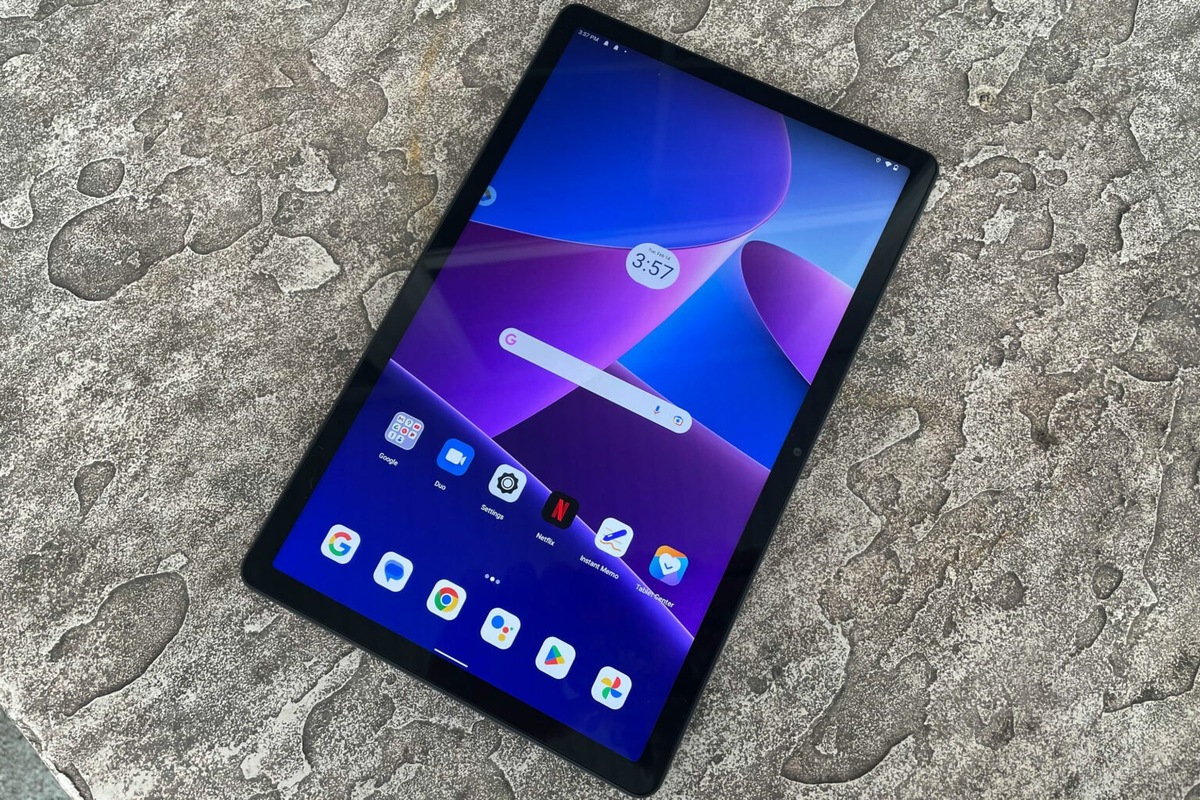 Экран с диагональю 10,3 дюйма, IPS-матрицей и разрешением Full HD. Картинка детализированная, засветов нет, запас яркости приличный, инверсий цветов не наблюдается. Lenovo позиционирует этот таблет как лучший семейный планшет с акцентом на мультимедийных характеристиках. Так, здесь есть детский режим, неплохая акустическая система, качественный экран. Заряжается девайс через USB Type-C около трех часов. Полной батареи емкостью 5000 мАч хватает на 8 часов при довольно активной эксплуатации.