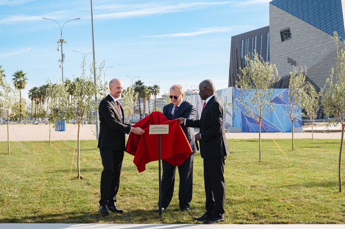 В церемонии посадки деревьев приняли участие специальный представитель Президента России по Ближнему Востоку и странам Африки, заместитель министра иностранных дел России Михаил Богданов, глава администрации федеральной территории Сириус Дмитрий Плишкин и министр иностранных дел, африканского сотрудничества и по делам мавританцев за рубежом Мавритании Мохамед Салем Ульд Мерзуг. Традиция торжественной посадки деревьев в России существует со времен правления императора Николая II. Оливковое дерево считается символом мира, и сейчас используется в международной дипломатии и культуре как эмблема мирных инициатив, разрешения конфликтов и стремления к гармонии