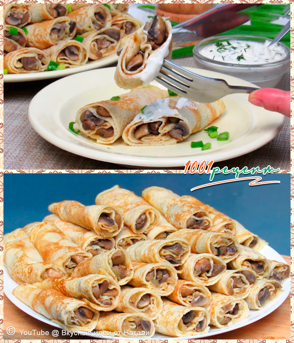 Самый простой РЕЦЕПТ тонких ВКУСНЫХ БЛИНЧИКОВ с грибной начинкой