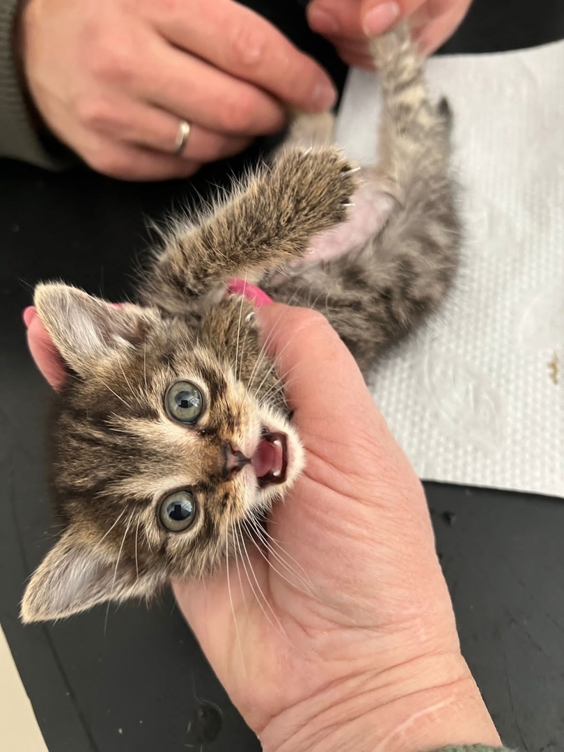 Поступил маленький котёнок, которого мы назвали Индус. Принёс его молодой студент из Индии, нашёл возле общежития, сложил в рюкзак и понёс в клинику. Поскольку по-русски парень почти не говорит, разбираться долго врачи не стали, отправили в приют. Такой крошечный котёнок не выжил бы без помощи, но и в приюте ему не выжить - это факт. Сотрудница приюта забрала малыша домой и сейчас выкармливает искусственно, каждый день, принося на работу, чтобы кормить по часам. Проведены операции псу Е