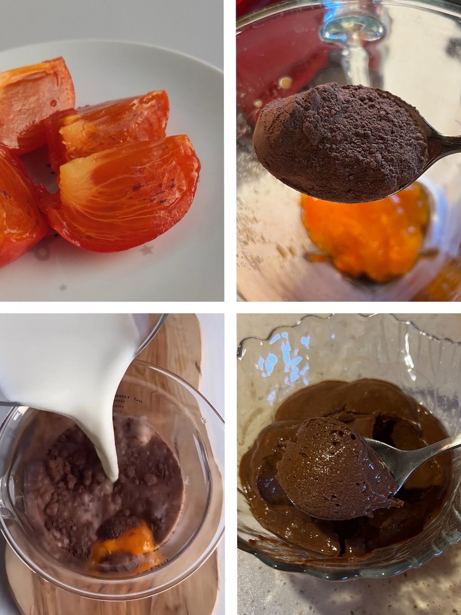 Приготовьте себе или позовите на кулинарный эксперимент деток! - Хурма 2 шт (желательно очень спелая) очистить от кожуры и косточек - Какао 2 ст ложки - Растительное молоко (у нас обычное овсяное «немолоко») Если хочется послаще можно добить мед (мы не добавляли) Все взбиваем в блендере. Выливаем в креманки и оставляем холодильнике минут на 20. Наслаждаемся вкусным полезным пудингом!
