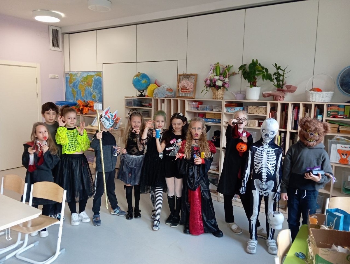«В нашей школе прошла потрясающе весёлая вечеринка! Дети были в восторге! Мы решали страшные задачи, читали страшные истории, рисовали и вырезали. Веселились от души. В конце вечера устроили дискотеку с любимыми хитами. Дети остались очень довольны и с нетерпением ждут следующей вечеринки!» #школафеникс