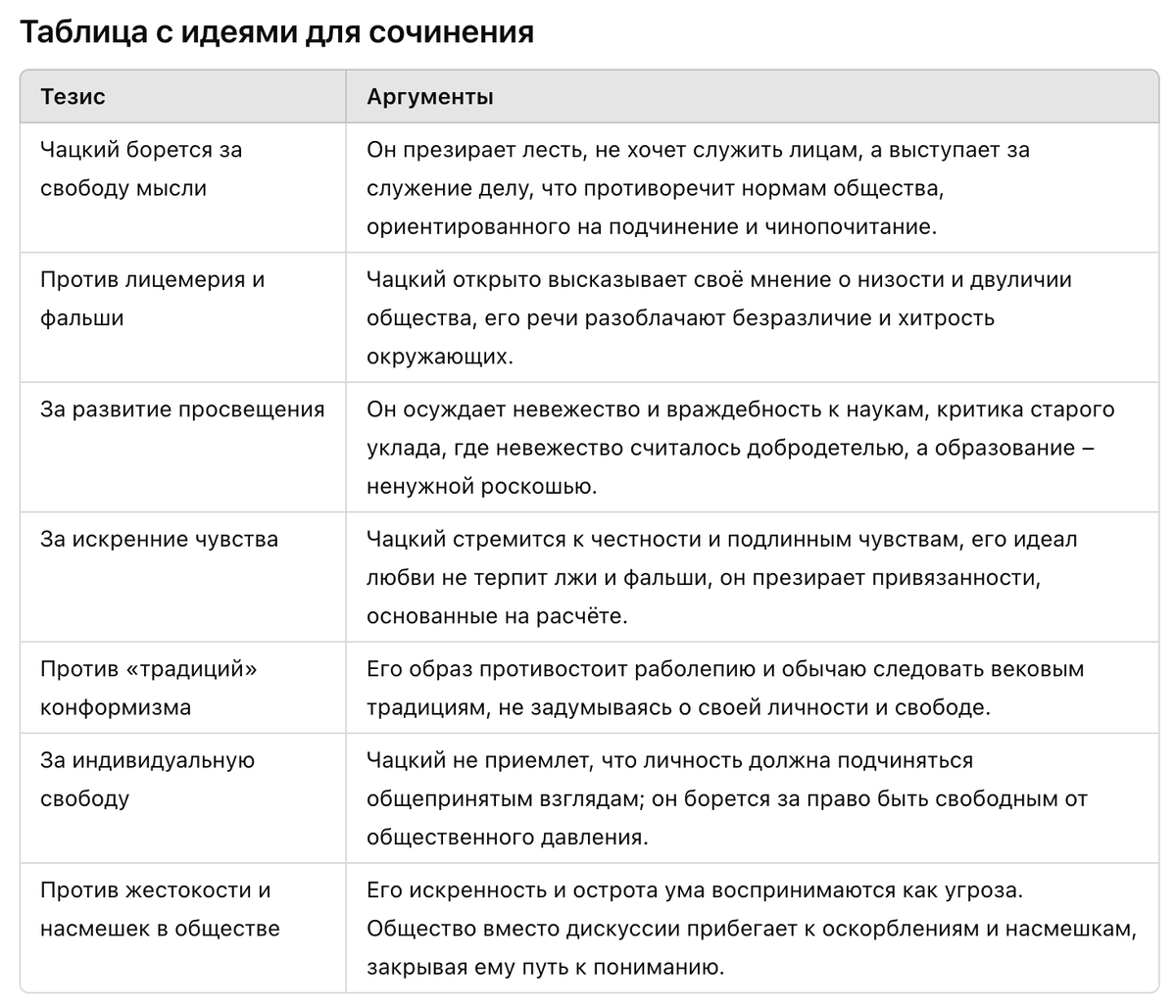 Сочинение: Чацкий – герой, который не приемлет ни фальши, ни лицемерия, которыми пропитано московское общество. Он стремится к подлинным человеческим отношениям, но сталкивается с пустотой и безразличием. Его разочарование особенно велико из-за Софьи, его первой и, как ему казалось, истинной любви, которая оказывается совершенно чуждой его принципам.