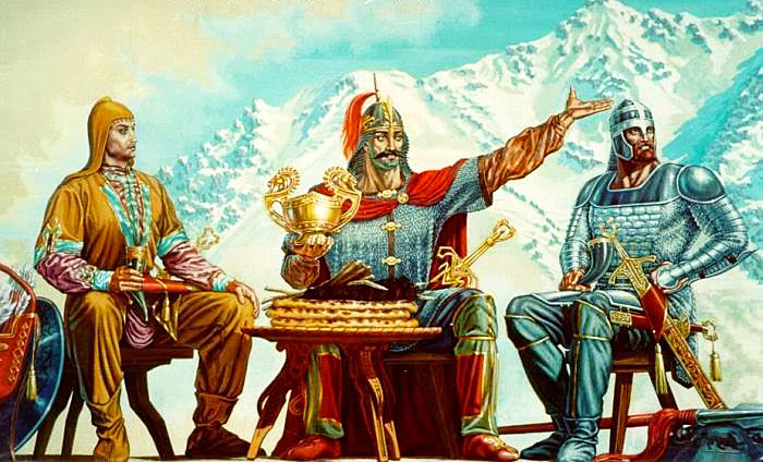 Свидетельства о силе духа наших предков сохранились в осколках Древней культуры кавказских народов – в сказах и легендах о Нартах. "На-Рты" в образах древнеславянского языка означает – пращуры которые дали своим потомкам знания о вселенских законах ("На" - давать, учить; "Рта" – Вселенские Законы, законы Рода и крови То). Это древние герои прародители многих индоевропейких народов. Сказания о нартах есть у всех: у русских и шотландцев, скандинавов и адыгов, осетин (Асов или по другому Ясов), абхазов, абазин, убыхов, балкарцев (черных болгар) и др.. Нарты упоминаются в фольклоре некоторых народов Дагестана (например у кумыков) и отдельных грузинских этнических групп не семитского происхождения — сванов(се ваны), рачинцев, хевсуров.